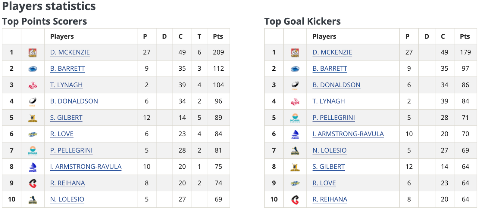 It is also notable that these two were, once again, the two top point scorers in Super Rugby this year, with Damien McKenzie both attempting (30) and kicking (27) considerably more penalties than anyone else (second is Sam Gilbert with just 13 attempted and 12 successful).